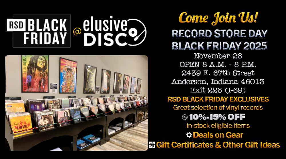 Celebrate the best shopping day of the year with incredible savings, exclusive releases, and a full day of music excitement at Elusive Disc. Make this Black Friday one to remember!