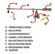 How it works: Hair can conduct static electricity. The material that the Tru-Sweep is made from has continuity throughout the entire build of the unit. Once the static is encountered on the record, the electrons flow up the camel hair encounter the grounding conductor via wand portion where it travels to the uni-pivot bearing then transferred to the height extension of Tru-Sweep then to the base and discharged by the ground wire. This is connected to your Phono Pre-amp ground lug or to your receiver ground lug or amplifier ground lug.