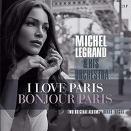 Michel Legrand's first "homage" to the "capital city" was I Love Paris of 1954 which became a best-selling LP in the U.S. and started the vogue for albums of continental music. It is a musical picture of Paris in the fifties. Legrand blends 16 songs (LP-1) together into a sort of suite, beginning with church bells chiming in the square, then taking off on a musical journey around the city. On the 1956 album Bonjour Paris, Legrand's orchestra is in fine form as they work through a mix of French favorites, like Edith Piaf's "La Vie En Rose" & "Hymn to Love" and Charles Trenet's "La Mer". The real highlights come when Legrand turns postmodern (at such an early date) with "cut-up" renditions of "The Poor People of Paris" and the Nat 'King' Cole classic "Two Loves Have I".