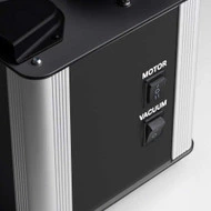 Pro-Ject has removed the screw-down clamp from this design for the sake of efficiency. The magnetic clamp not only protects the record label from fluid damage, it also speeds up the whole cleaning process. Place your record over the spindle, drop the clamp in place (you'll feel the magnetic attraction!) and you're ready for the scrubbing & vacuuming steps. A soft goat hair bristle, wet-cleaning record brush is supplied for the initial scrub. The robust, easy-to-use metal arm is mechanically stable and focuses all suction power directly onto the record surface. Paired with a self-adhesive, soft-brushing arm strip, your record grooves are cleaned to perfection leaving only the musical material to be heard. The internal reservoir (0.5L) collects the spent cleaning fluid. Wash it 2 readily evaporates in the reservoir, too, meaning the container rarely needs emptying. If/when it does need emptying, it's as simple as holding the unit partially upside down (see user manual).